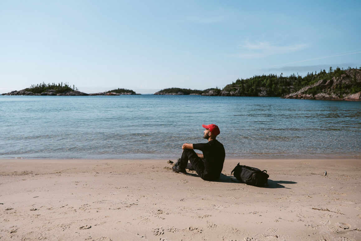 Rapidement, la forêt s’ouvre sur des promontoires rocheux et de longues plages de galets. À chaque percée, le lac Supérieur se dévoile comme une mer intérieure : eaux d’un bleu profond, falaises sculptées par les vagues, horizon qui semble infini. Ces panoramas, souvent déserts, offrent des pauses magiques pour respirer l’immensité.